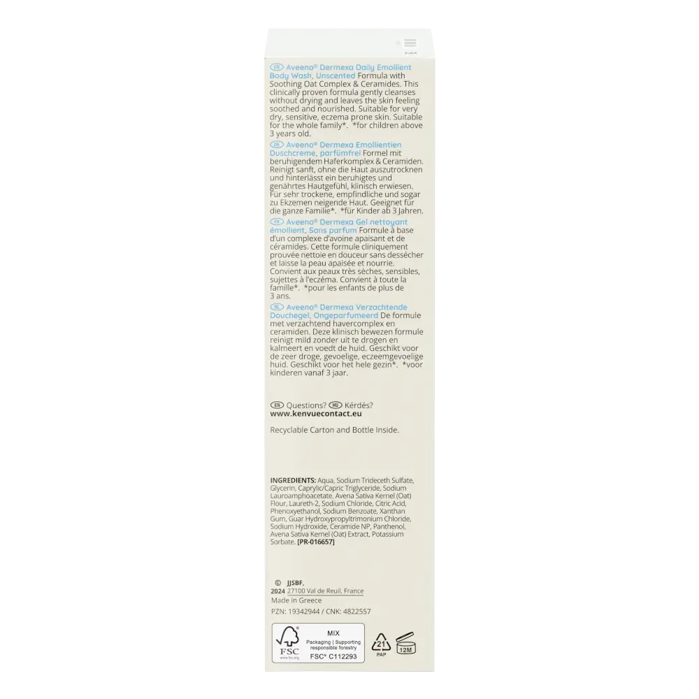 Aveeno® Dermexa Verzachtende Douchegel is ontwikkeld met kalmerende haverbloem en ceramiden. De klinisch bewezen, zeer compatibele en veganistische* formule reinigt mild zonder uit te drogen en geeft de huid een gekalmeerd en gevoed gevoel. Aveeno® Dermexa Verzachtende Douchegel verzacht en beschermt de zeer droge, gevoelige en jeukende huid. Aveeno® Verzachtende Douchegel is geschikt voor het hele gezin† en de 98% biologisch afbreekbare formule is ongeparfumeerd en zeepvrij. Het is ook geschikt voor mensen die gevoelig zijn voor huidaandoeningen zoals eczeem.